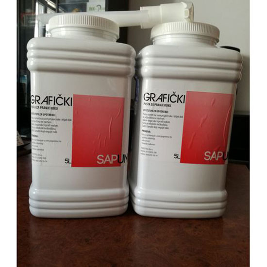 Originalna belgijska ekološka pasta prijatnog mirisa - grafički sapun za pranje ruku na bazi lanolina koji neguje kožu ruku. Primenjuje se svuda gde dolazi do jake zaprljanosti ruku grafičkim bojama, uljem, mašću, metalom, gumom itd. Način upotrebe: par grama paste se nanese na ruke i trlja da bi abrazivni sastav delovao na nečistoću. Nakon toga ruke treba isprati mlakom vodom. Lanolin sprečava sušenje kože i daje osećaj kao da su ruke namazane finom kremom. Pakovanje: 5 litara Metalni dozer - pumpica je dužine do dna posude i košta 1800,00 din. + PDV.